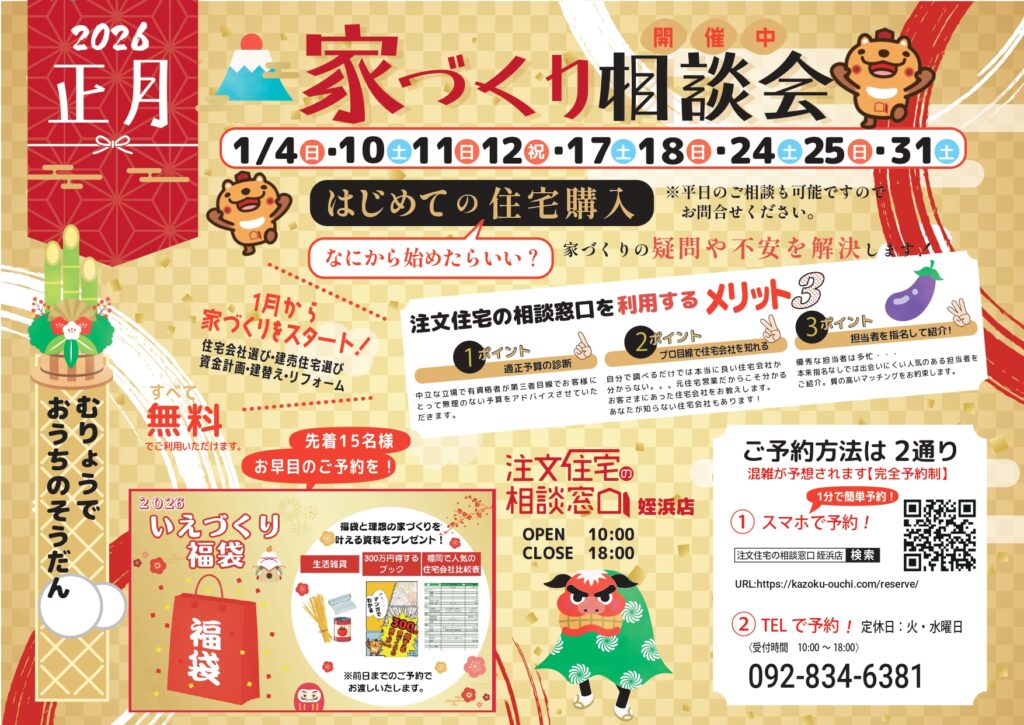 2026年 新年最初の家づくり相談会のご予約スタート! 2025年12月に政策金利が0.25%上がり、住宅ローン金利にも大きな影響が...住宅ローン減税やエコ住宅補助金等を利用して少しでもお得に注文住宅を建てたい方はぜひご利用ください! ご予約はコチラのカレンダーからお願いいたします 前の記事へ | 次の記事へ