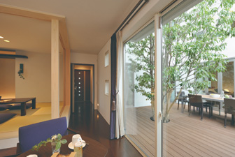 環境設計の家 特徴 アルミで包んだ家建物をアルミ箔で覆われた高性能断熱材ですっぽり包み込み、徹底した気密処理を施した完全な「外張断熱の家」。冷暖房のロスが少なく、室内の気温差が少なく、今までにない快適を実現しました。
